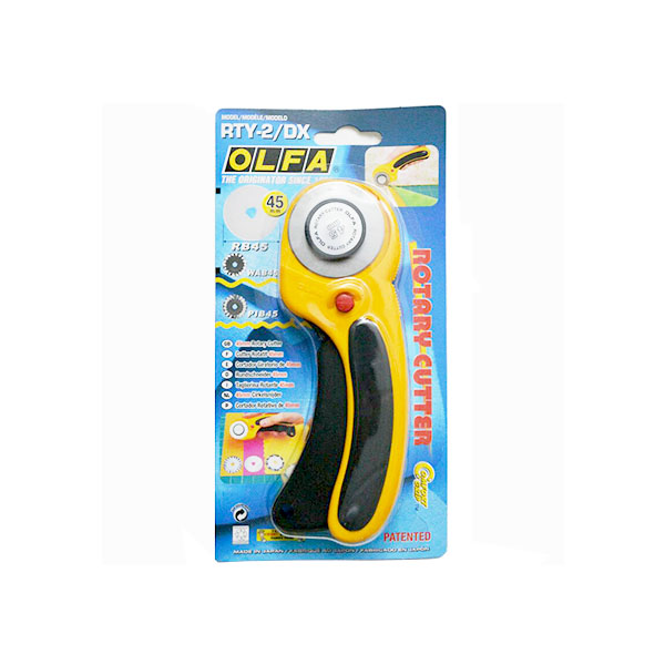 Elastomer soft handle reduces users' hand fatigue and provides long-lasting comfort Cuts through multi-layer with a single stroke, leaving clean finish Push red button before use. Blade retracts automatically when releasing the handle 45MM Rotary Blade